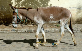 In the town of Mitla we saw a horse tied to a stone which grinds the Maguey for making mescal.